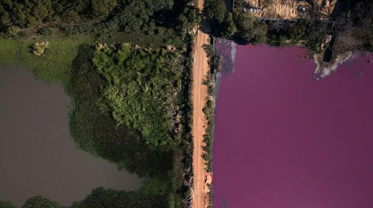 Lagoa paraguaia fica bicolor após poluição