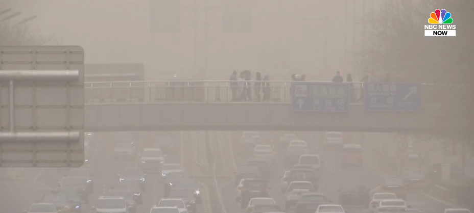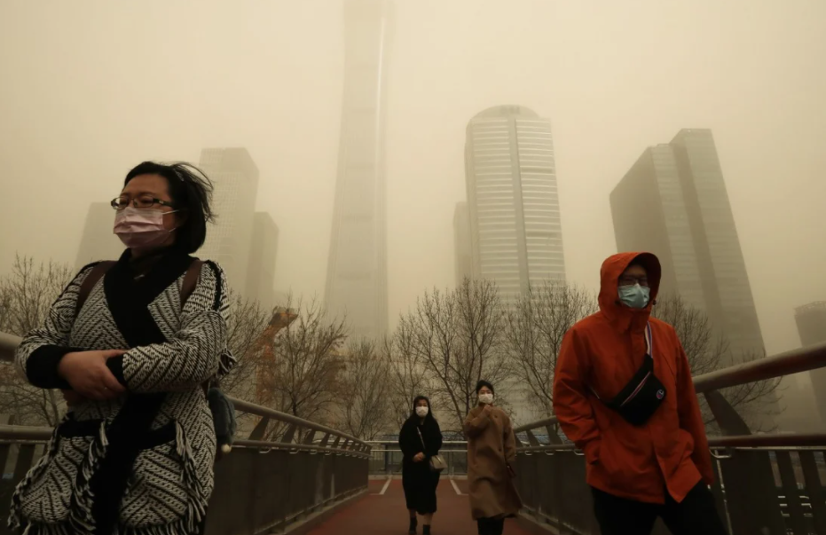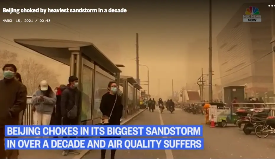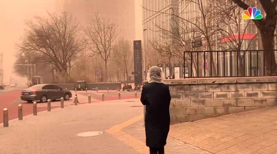 O Centro Meteorológico Nacional da China emitiu um alerta “amarelo” de tempestade de areia na manhã de segunda-feira, o segundo menor alerta no sistema de alerta de quatro camadas da China, lembrando o público nas regiões afetadas de fechar portas e janelas e usar máscaras e lenços para se proteger. Ele também alertou que a tempestade de areia provavelmente duraria até quinta-feira.