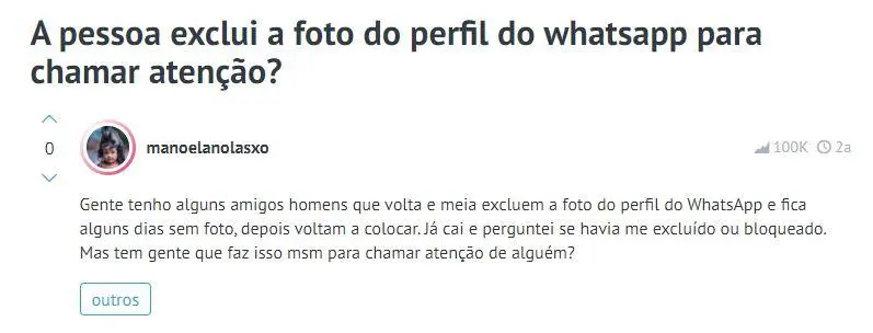 O mais interessante é que com poucas pesquisas é possível encontrar fóruns de pessoas com as mesmas dúvidas. As respostas variam de afirmações desde pessoas que acreditam que a atitude tem como fim chamar a atenção até aqueles que já fizeram a mesma coisa. Mas é de comum acordo que grande parte das pessoas que deixam o perfil sem foto geralmente estão tristes, desejam um afastamento das redes ou enfrentam períodos complicados.