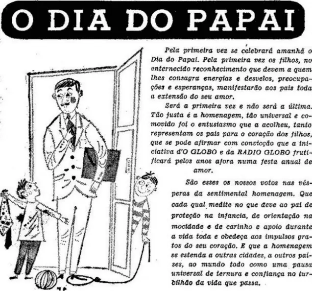 O Dia dos Pais foi criado na década de 50 e, pasmem: por um publicitário. Sylvio Behring, que era diretor do jornal e da rádio Globo, queria atrair anunciantes e aproveitando uma população predominantemente católica, lançou a campanha para que fosse comemorado o dia dos pais em 16 de agosto, dia de São Joaquim – pai de Maria. A iniciativa pegou, e, nos anos seguintes, a data se estendeu por todo o Brasil.