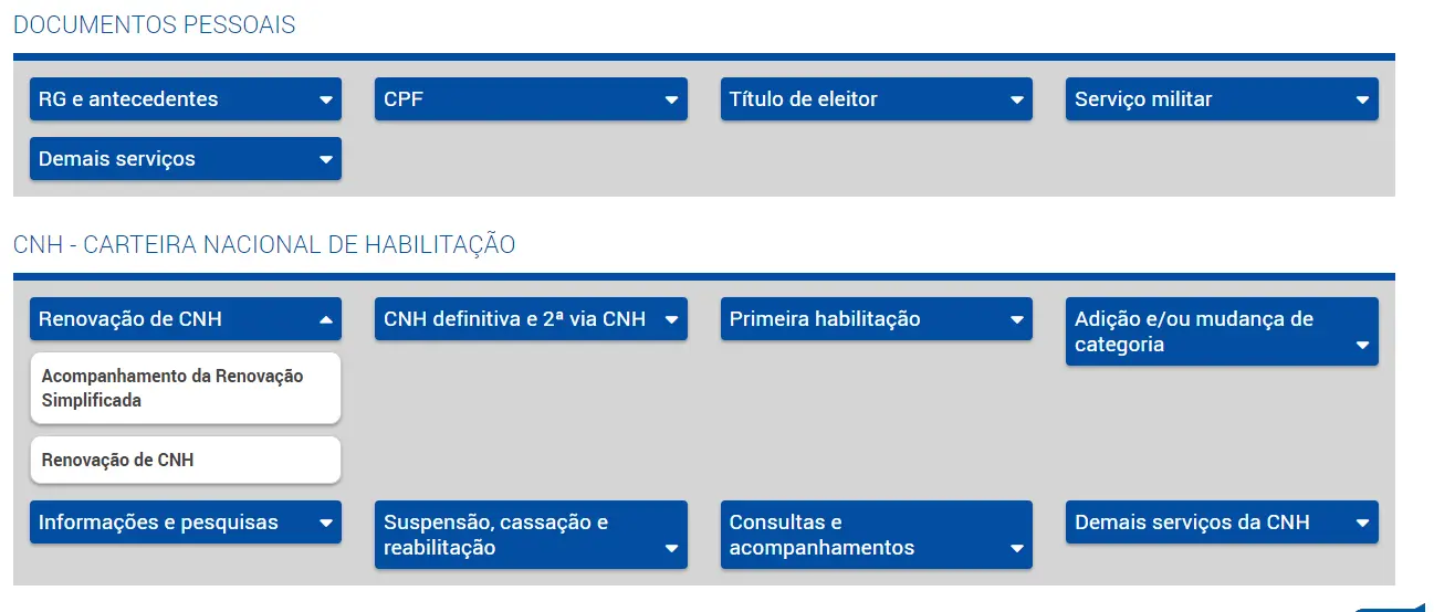 Em seguida, aperte em “Renovação de CNH”, na seção de “CNH – Carteira Nacional de Habilitação”.