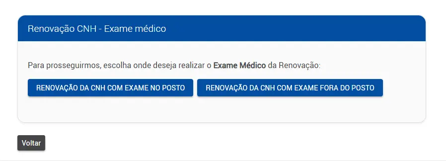 Depois disso, o motorista deve seguir as instruções para agendar seu exame médico da renovação. Pode ser necessário escolher entre ser examinado no posto ou fora dele.