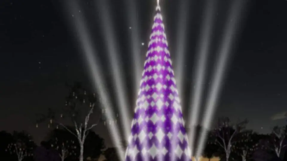 O ornamento é ainda maior neste ano e conta com iluminação roxa, já que a ação é patrocinada pelo banco Nubank. A árvore tem 57 metros de altura, dois metros a mais que a montada no ano passado, e é feita de LED.