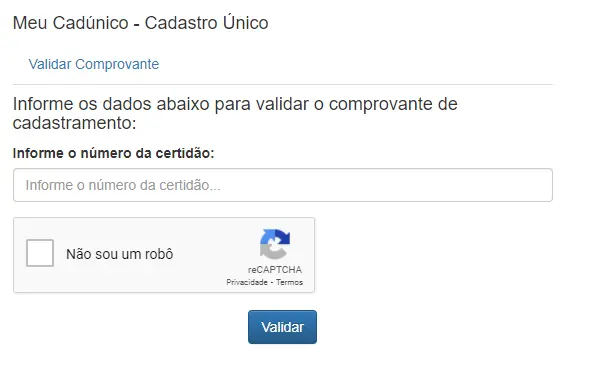 Através da Consulta Cidadão, realizada no site ou aplicativo Meu CadÚnico, o cidadão consegue verificar se já está cadastrado nesse sistema de dados de família de baixa renda, bem como verificar os dados de inscrição e conferir se é necessário fazer uma atualização. É possível ainda emitir comprovante de cadastramento, que poderá ser impresso e usado quando necessário.
