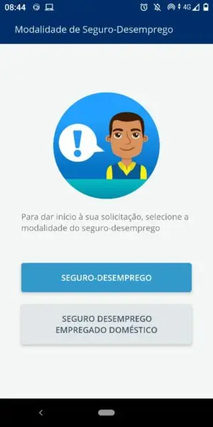 Então, o trabalhador deve selecionar a modalidade do benefício, deve escolher entre “seguro-desemprego” e “seguro-desemprego empregado doméstico”.
