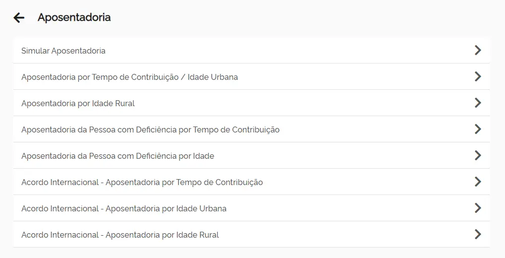 4. Selecione novamente o tipo de aposentadoria