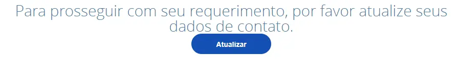 Após clicar na opção de aposentadoria a que tem direito, o trabalhador deve atualizar seus dados de contato para prosseguir com a solicitação. Para isso, deve clicar no botão azul escrito “Atualizar”, e alterar os dados que forem necessários. São informações relacionados a itens como CEP, e-mail e celular.
