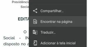 Depois de acessar a página com a lista das pessoas convocadas, você tem de clicar nos três pontos no canto superior direito para abrir mais opções. Em seguida, procure a opção ‘Encontrar na página’.