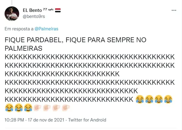 Neste momento, o tricolor briga para não cair na zona de rebaixamento do Brasileirão e é claro que torcedores também aproveitaram para zoar o Palmeiras de clubes que ajudam os rivais.