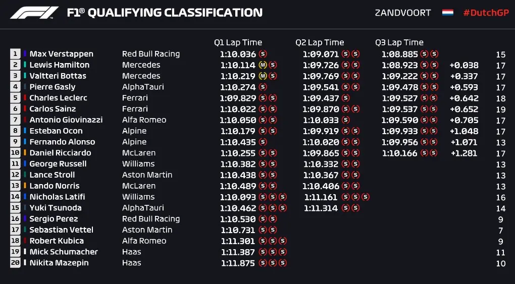 A Ferrari comandou o Q1 na pista mas foi Verstappen que, mesmo com acidentes pelo percurso e a bandeira vermelha necessária, fechou o Q2 e o Q3 para garantir o pódio no grid de largada em Zandvoort.