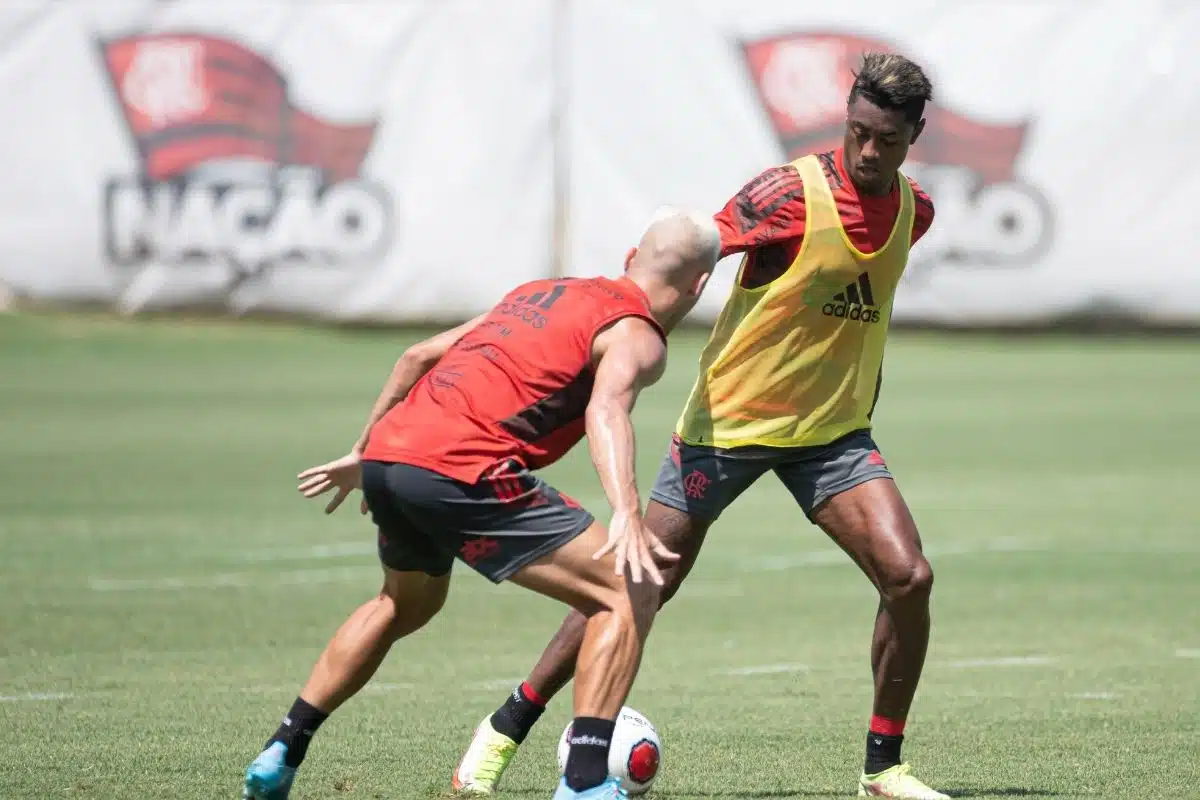 Escalação do Flamengo no jogo de hoje: Matheus Cunha; Wesley, Gabriel Noga, Cleiton e Marcos Paulo; Igor Jesus, Yuri de Oliveira e Matheus França; Thiaguinho, Lázaro, André