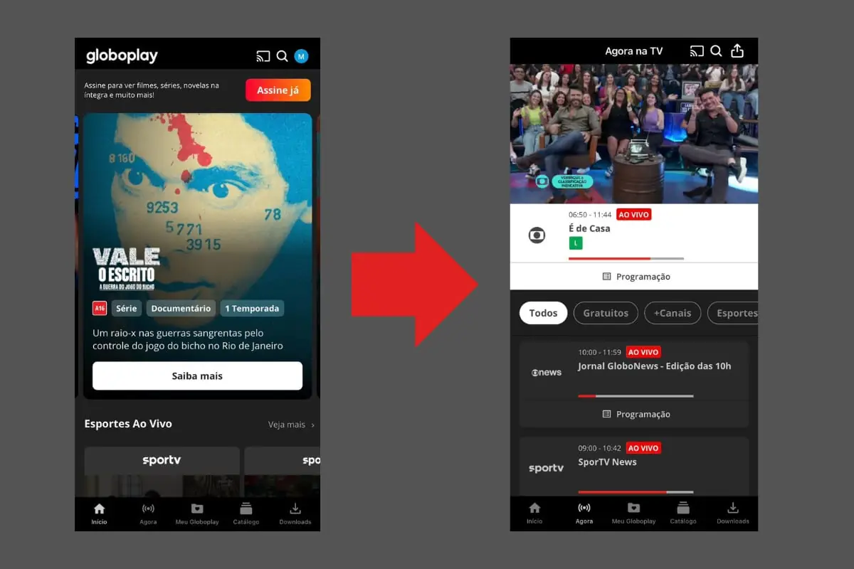 Passo 3: depois de concluir essa etapa, volte para a tela inicial e clique em ‘Agora na TV’. A transmissão começará em poucos segundos.