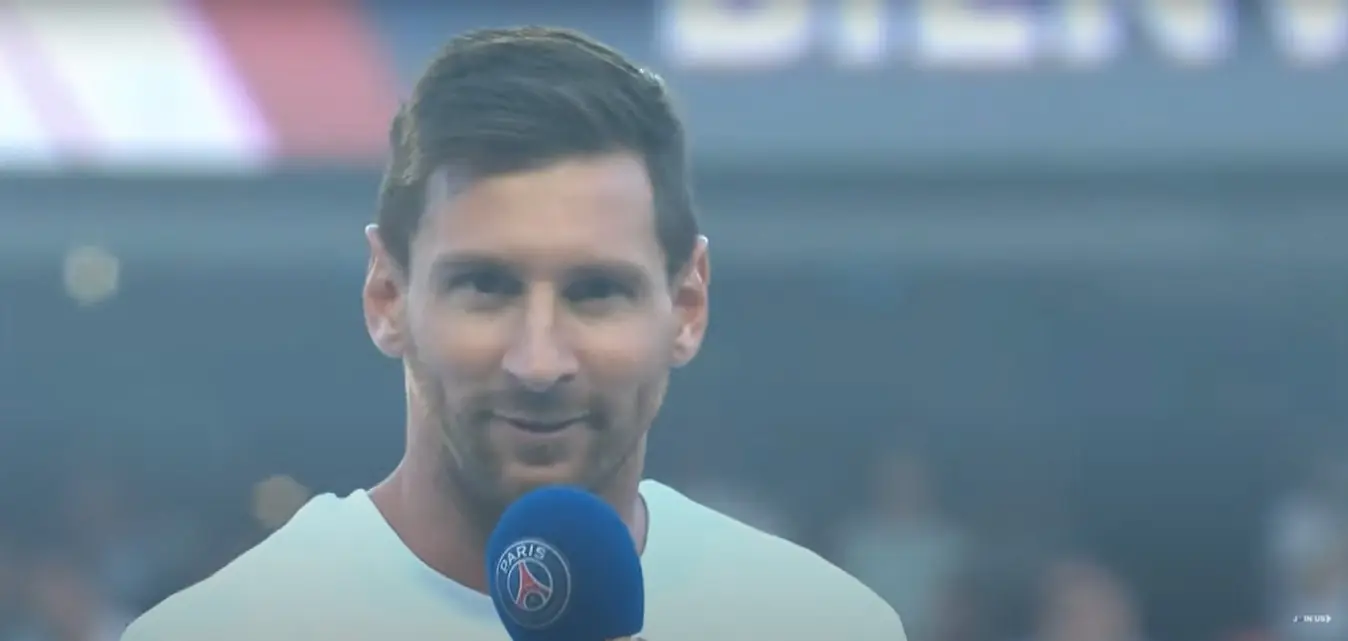 Em entrevista durante a apresentação para a torcida do PSG, Messi garantiu estar ansioso para a sua estreia e muito feliz com toda a calorosa recepção que recebeu desde o momento em que chegou no aeroporto até o estádio. Mesmo com uma semana corrida, o astro garante que está muito feliz e esperançoso para ganhar títulos.