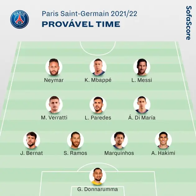 - Provável PSG: Donnaruma/Navas; Hakimi, Sergio Ramos, Marquinhos/Kimpembe e Bernat; Paredes, Verratti e Wijnaldum/Dí Maria; Mbappe, Messi e Neymar