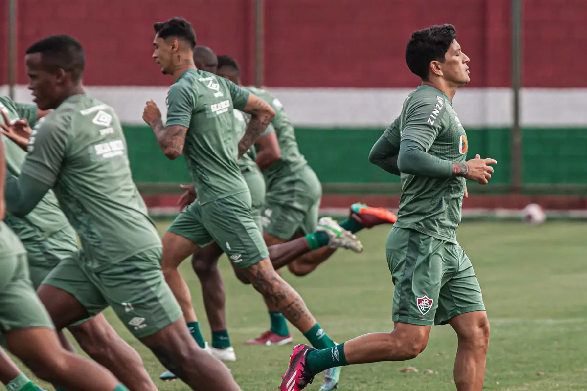 Provável escalação do jogo do Fluminense hoje: Fábio; Samuel Xavier, Nino, Manoel, Calegari; André, Martinelli, Yago Felipe, Ganso; Jhon Arias e Cano.