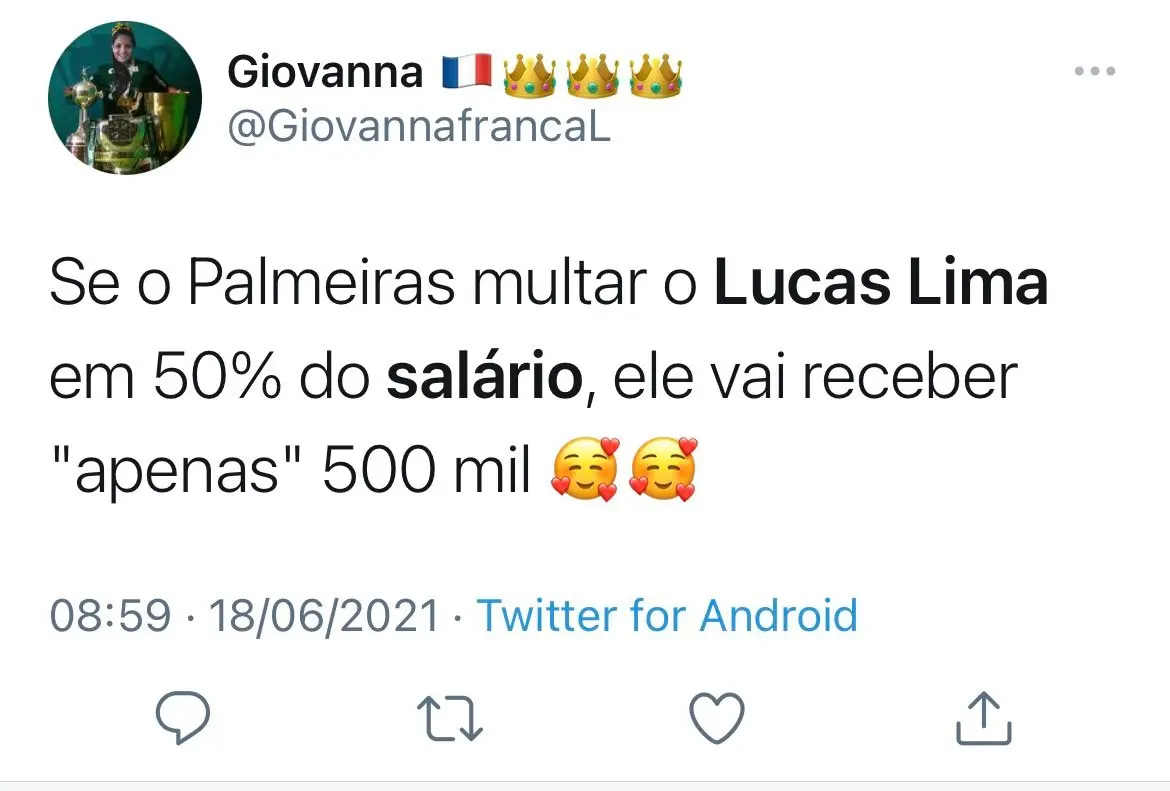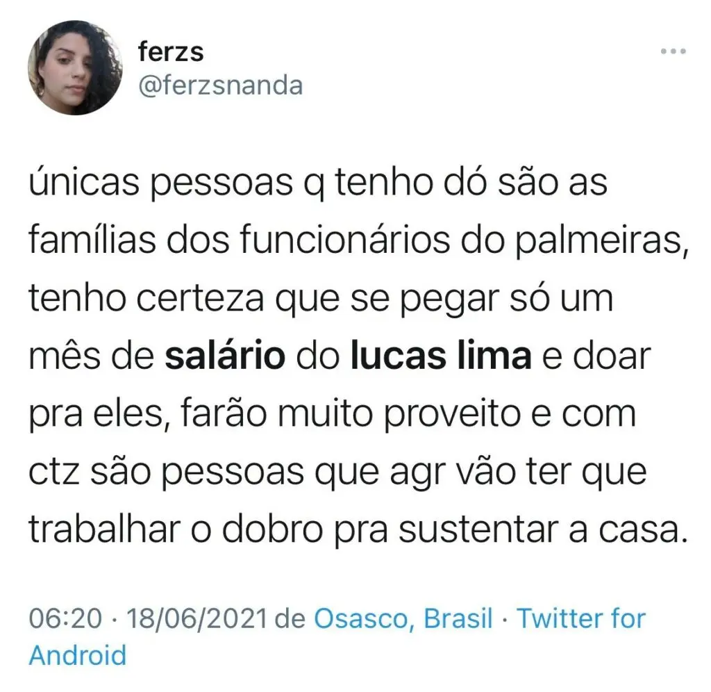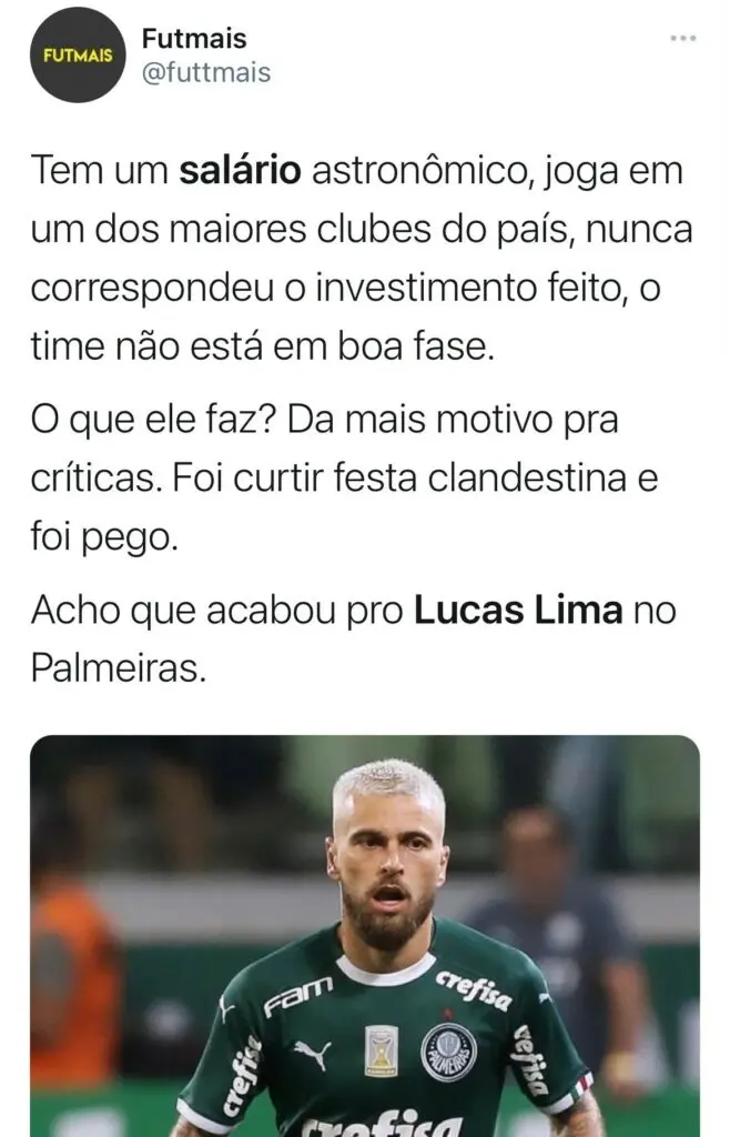 A situação gerou revolta nas redes sociais, principalmente com comparações referindo-se ao investimento feito em Lucas Lima e o valor que recebe de salário.