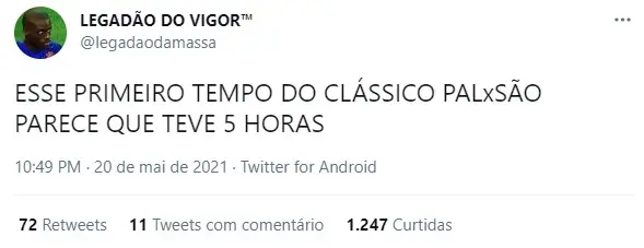 No primeiro jogo da final no Campeonato Paulista na temporada 2021, Palmeiras e São Paulo empataram sem gols na quinta-feira (20), jogando no Allianz Parque, a casa do time verde. Agora, a decisão ficou para o próximo domingo (23) no Morumbi. Em jogo sem muitas emoções para ambos os lados, a internet aproveitou para divulgar imagens, vídeos e memes da partida.