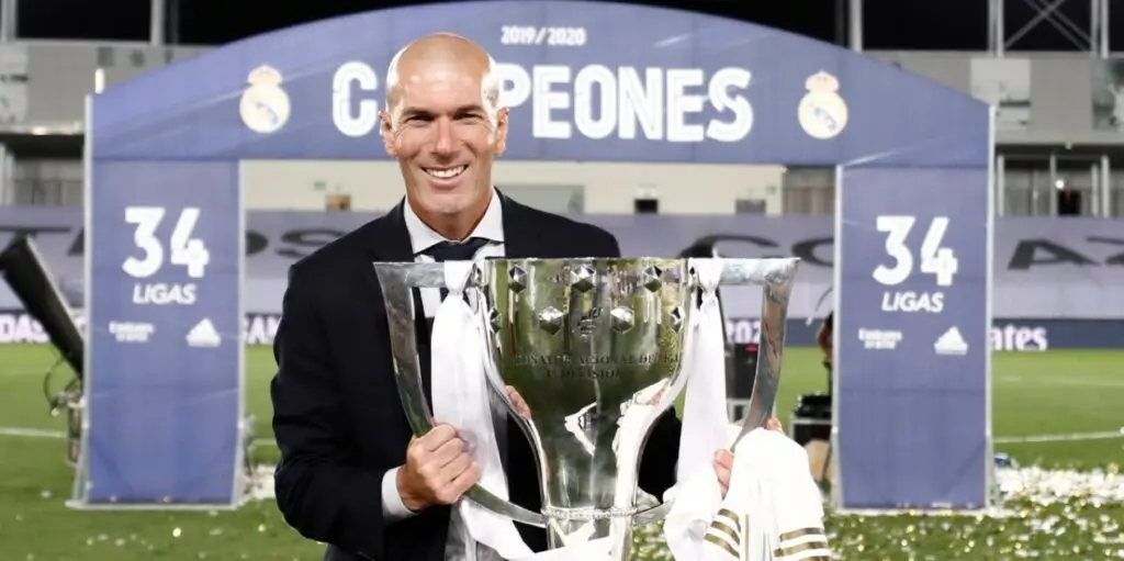 Zidane em 2020 após vencer o Campeonato Espanhol (Real Madrid Oficial / @realmadrid)