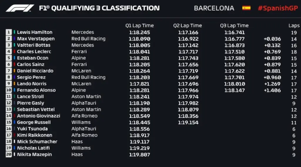 Os pilotos da Fórmula 1 entraram na pista neste sábado (08), para o treino classificatório e definição do grid de largada do GP da Espanha. Depois de dominar os treinos livres, Lewis Hamilton garantiu mais um pole position, o 100º de sua carreira. Agora, os competidores se preparam para a quarta etapa da temporada de 2021. Confira então como ficou o grid de largada da F1.
