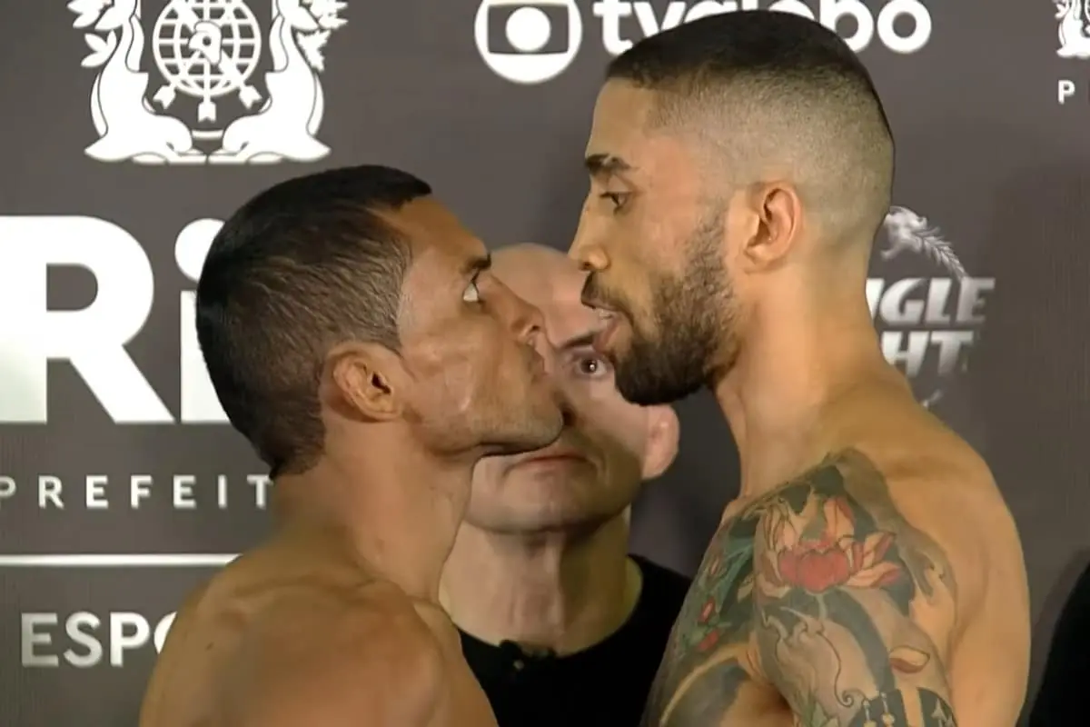 Do outro lado, Tiago Pereira também venceu complicações na saúde. Segundo o GE, ele nasceu com um tumor no pescoço causado por um acidente que sua mãe sofreu na gravidez. Os dois se provocaram na pesagem, mas o respeito prevalece acima de tudo.