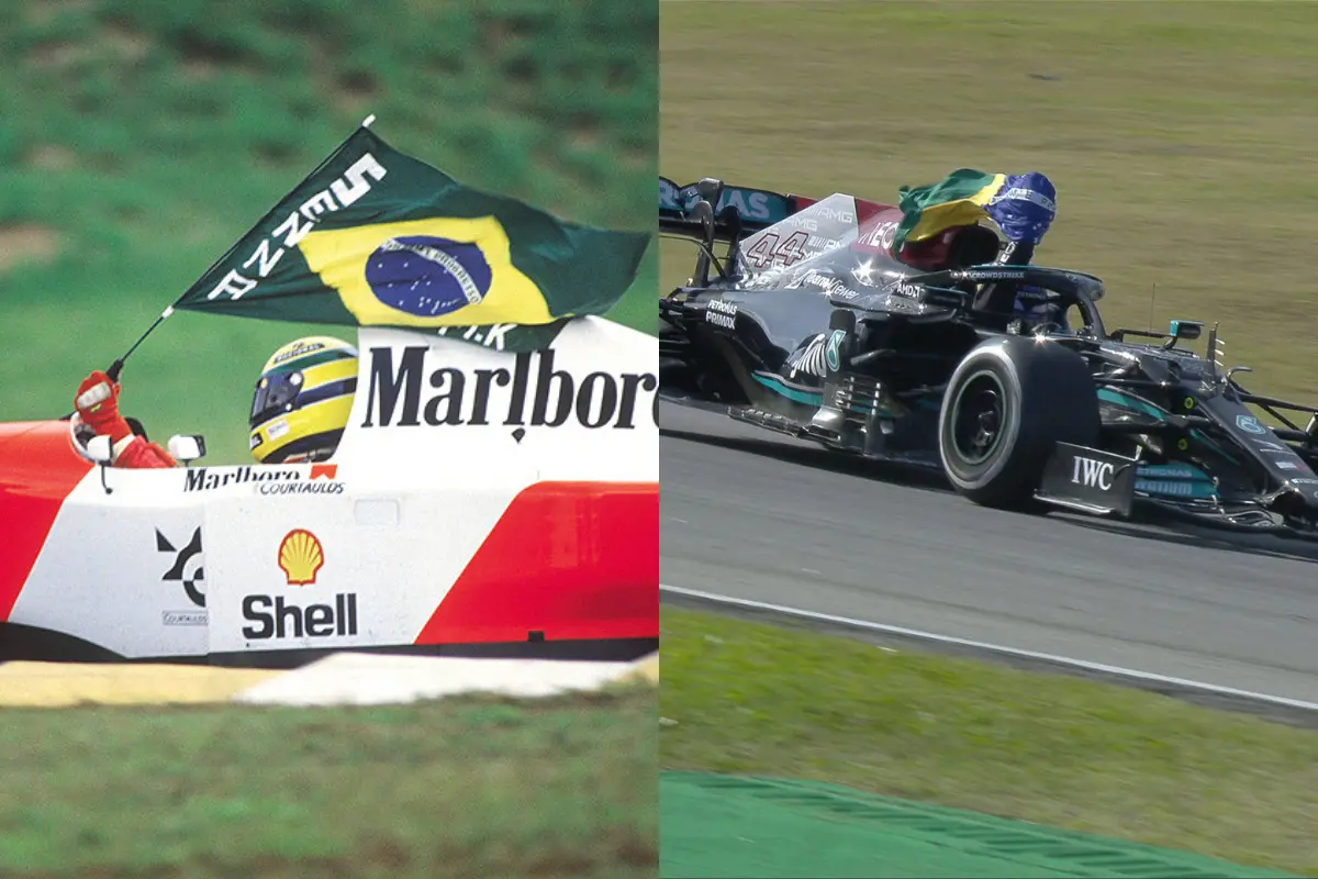 Fã declarado de Ayrton Senna, o britânico Lewis Hamilton venceu o GP de São Paulo 2021 de Fórmula 1 neste domingo, 14, e repetiu o gesto do ex-piloto. Ao cruzar a linha de chegada, o heptacampeão mundial levantou uma bandeira do Brasil e levou os torcedores à loucura no Autódromo de Interlagos.