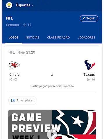 Os jogos da NFL são transmitidos pelos canais ESPN e canais Fox Sports. Também é possível acompanhar a temporada pelos serviços de streaming WatchESPN e Fox Sports.