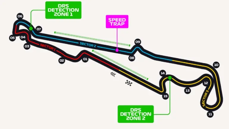 Ao todo, 53 voltas de 5,842 quilômetros são exigidos dos pilotos na corrida oficial do circuito, contando com curvas de alta, média e baixa velocidade, exigindo muita paciência dos profissionais e principalmente habilidade nas ultrapassagens.