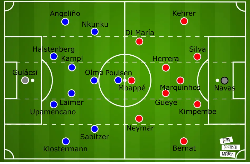 - Provável escalação do RB Leipzig: Gulacsi; Klostermann, Upamecano, Halstenberg, Angelino; Laimer, Kampl; Sabitzer, Olmo, Nkunku; Poulsen.