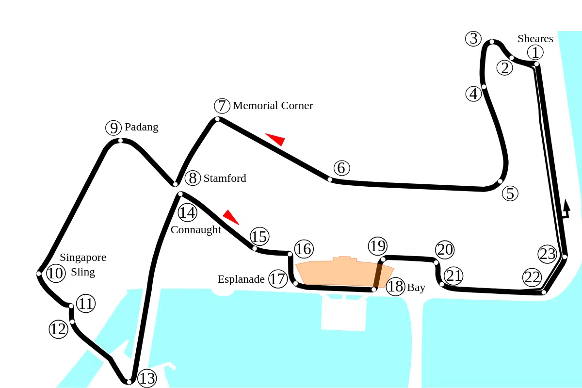 Localizado em Marina Bay, em Singapura, o Circuito Urbano de Marina Bay será o palco da 15ª das 22ª etapas da Fórmula 1 na temporada com 4.940 quilômetros. Construído em 2008 sob o projeto do arquiteto alemão Herman Tilke, o espaço integrou o calendário da liga de automobilismo no mesmo ano.