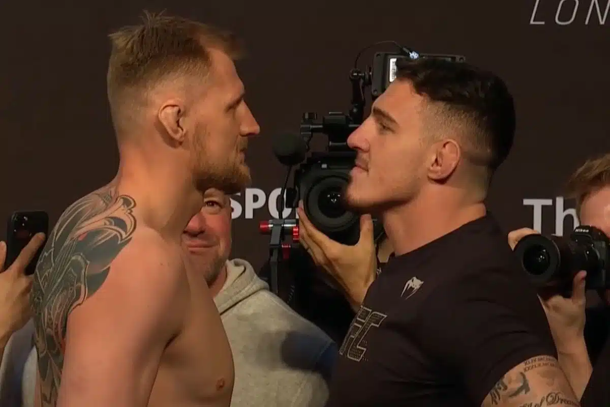 Veja como foram as encaradas na Pesagem Cerimonial do #UFCLondres, que será liderado pelo duelo entre #AlexanderVolkov e #TomAspinall neste sábado (19). O evento será partir das 14h30 (horário de Brasília), ao vivo e exclusivo no Combate.