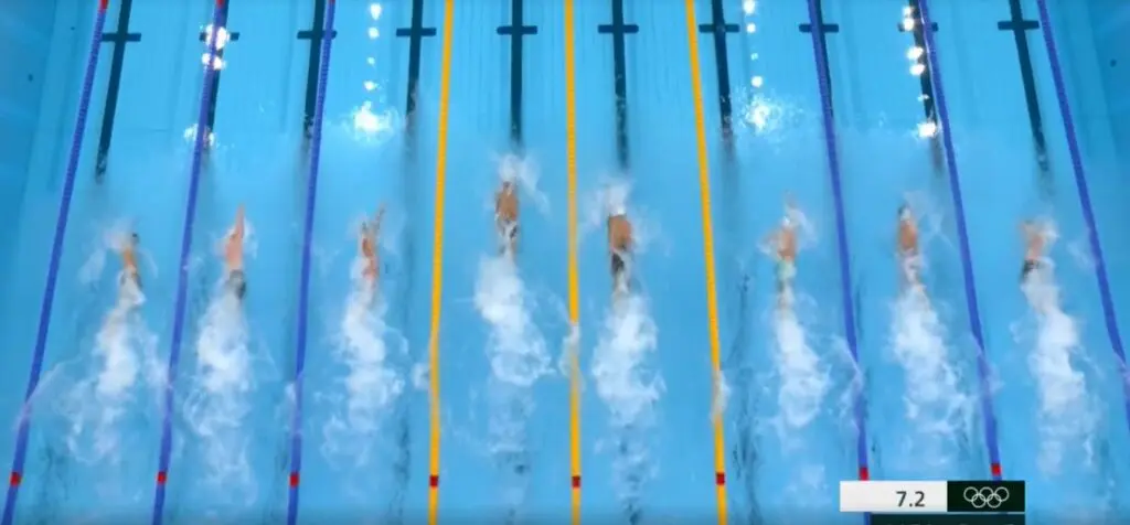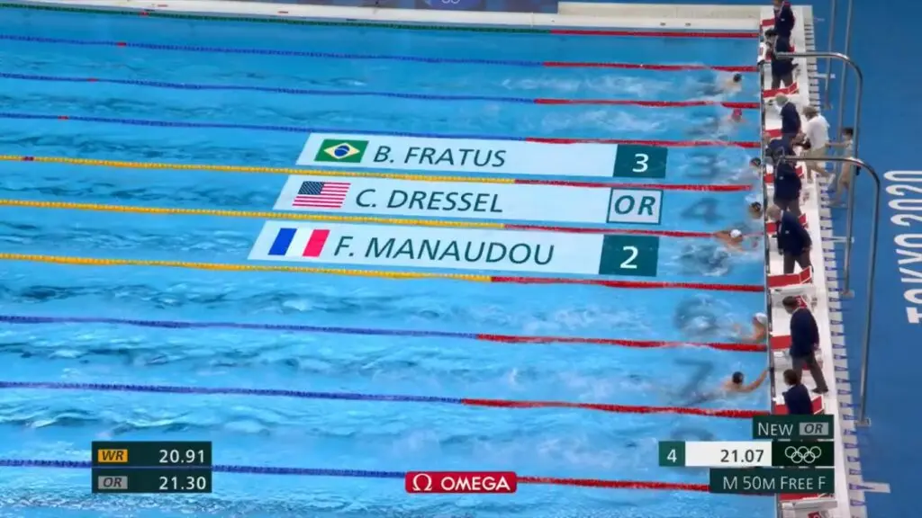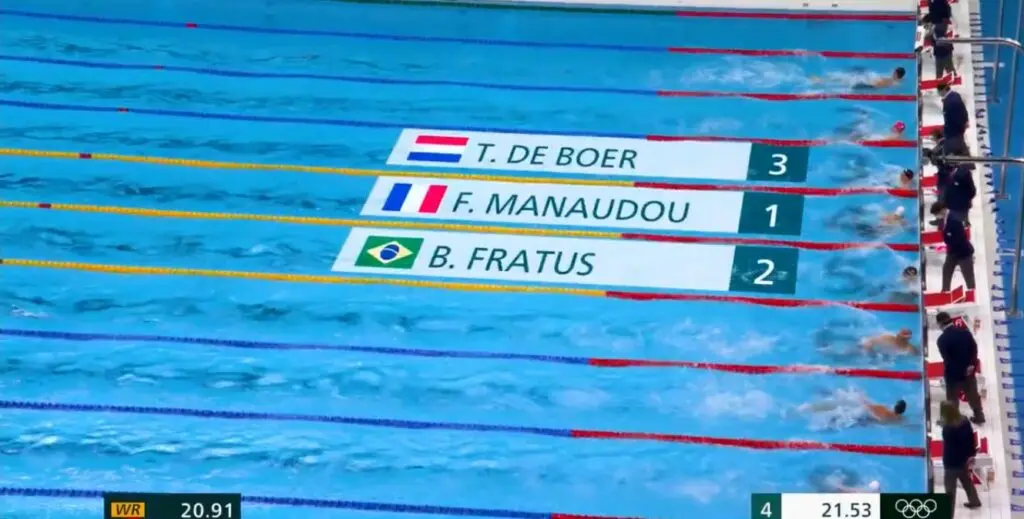 Então, chegou o sábado, 31 de julho, a última noite da natação pelas Olimpíadas de Tóquio em 2021, com a final dos 50m Livre Masculino. Bruno ganhou a oportunidade de nadar nas raias do meio, o que geralmente favorece o atleta.