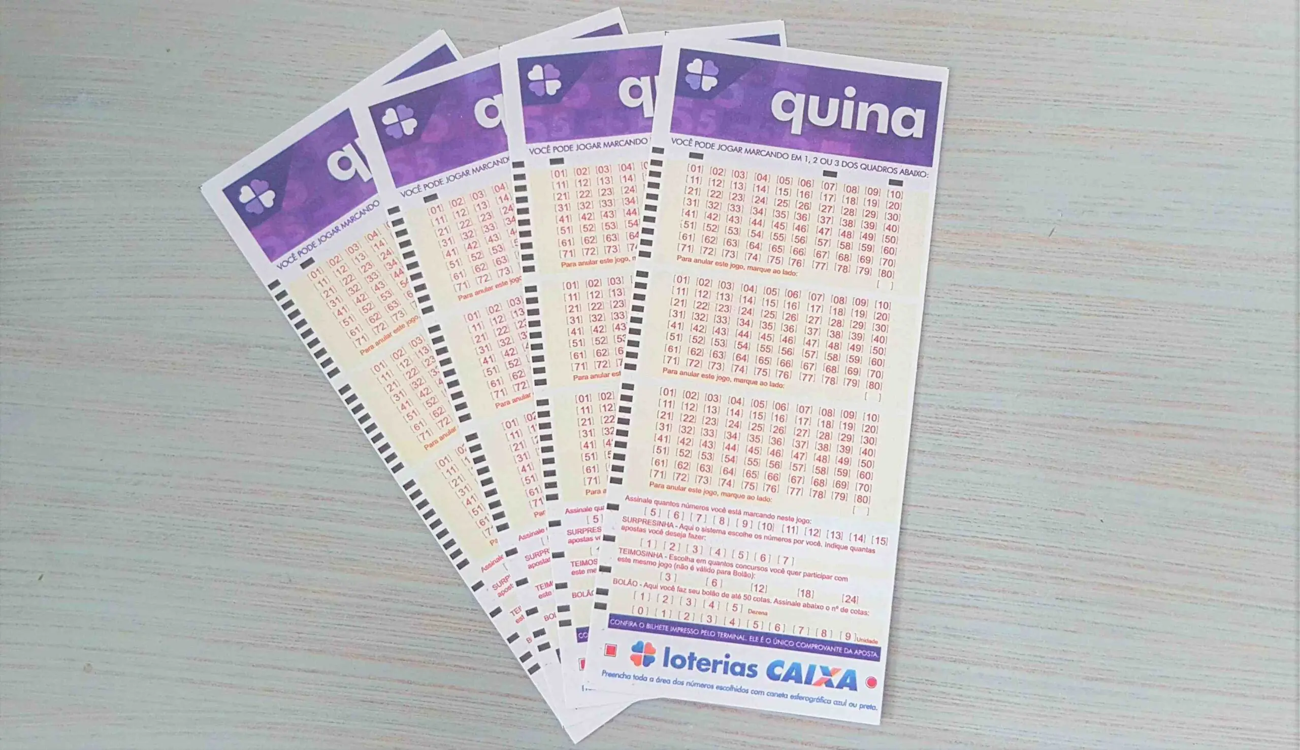 Na Quina 5438 o prêmio vai para quem acertar as cinco dezenas sorteadas, de 80 números disponíveis. Mas também ganha a aposta que marcar quatro, três ou dois números acertos.