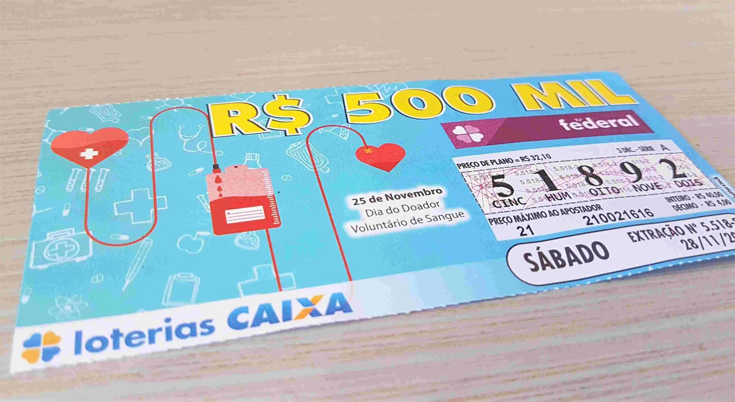O próximo sorteio da loteria Federal concurso 5520, de sábado (05), será realizado às 19h, no Espaço Loterias Caixa, em São Paulo. O prêmio principal da modalidade está estimado em meio milhão de reais.