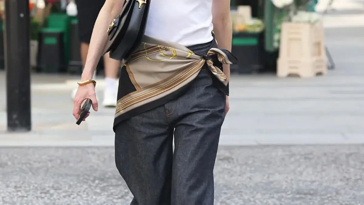 O “lenço de seda” atingiu seu pico histórico de buscas em 2026, tornando-se o item de seda mais procurado em combinação com a primavera. A “blusa de lenço de seda” alcançou o maior nível de interesse em uma década, e o “cinto bandana” figura entre os termos em alta do último mês — confirmando que o lenço migrou do pescoço para a cintura, o cabelo, o pulso.