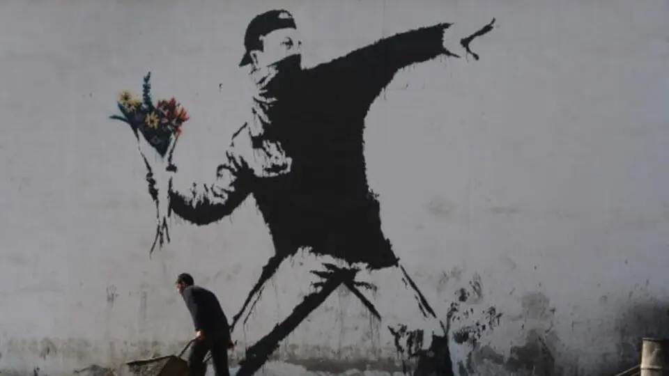 Banksy é o pseudônimo de um artista urbano britânico, cuja identidade real é desconhecida. É famoso pela arte com conteúdo social, com foco nas críticas aos conceitos de autoridade e poder.