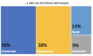 Além disso, o segmento comercial também se destaca dividindo a liderança do mercado solar com o segmento residencial em termos de potencia instalada. Tratam-se de cerca de 57 mil sistemas solares de tamanho médio de 27kWp dedicados para estabelecimentos comerciais em todo o país.