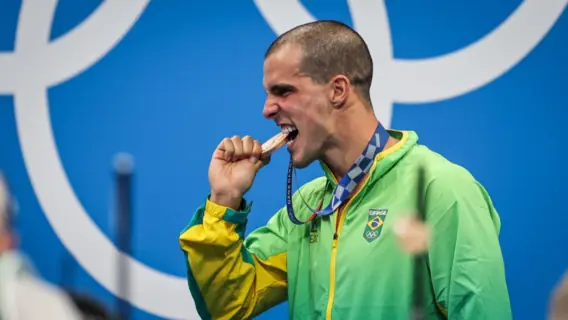 Brasileiro ficou em terceiro lugar nos 50m Livre neste sábado e garantiu a 9ª medalha do Brasil nas Olimpíadas de Tóquio