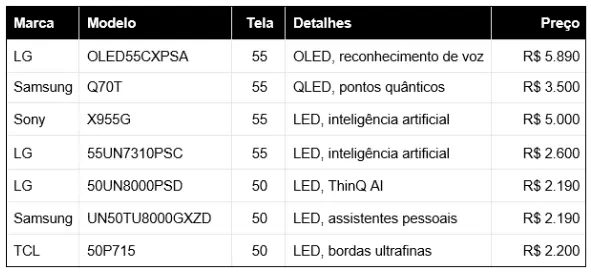 <span”>De maneira similar, a LG foi segunda colocada no ranking dentre fabricantes de TV em promoção. Seus modelos trazem tecnologias bem interessantes, como os painéis OLED, além da inteligência artificial ThinQ.